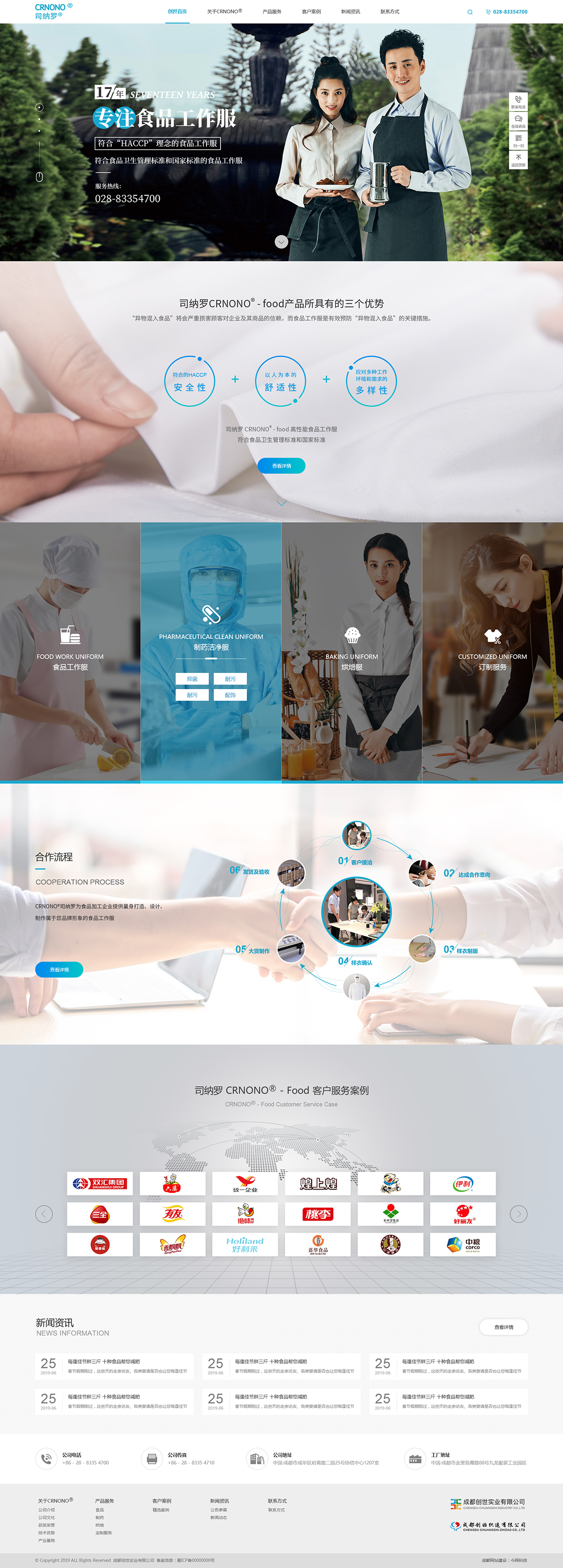 成都創世實業有限公司成立于2002年,是一家致力為制藥工業、醫療系統行業、食品工業、烘焙餐飲連鎖、電子工業、石化、光學、精密儀器、液晶、航天航空等專業客戶提供人員安全防護、形象塑造、產品質量安全保障體系的高科技(功能性)織造類產品解決方案的高新科技企業。是四川食品安全協會副會長單位。
