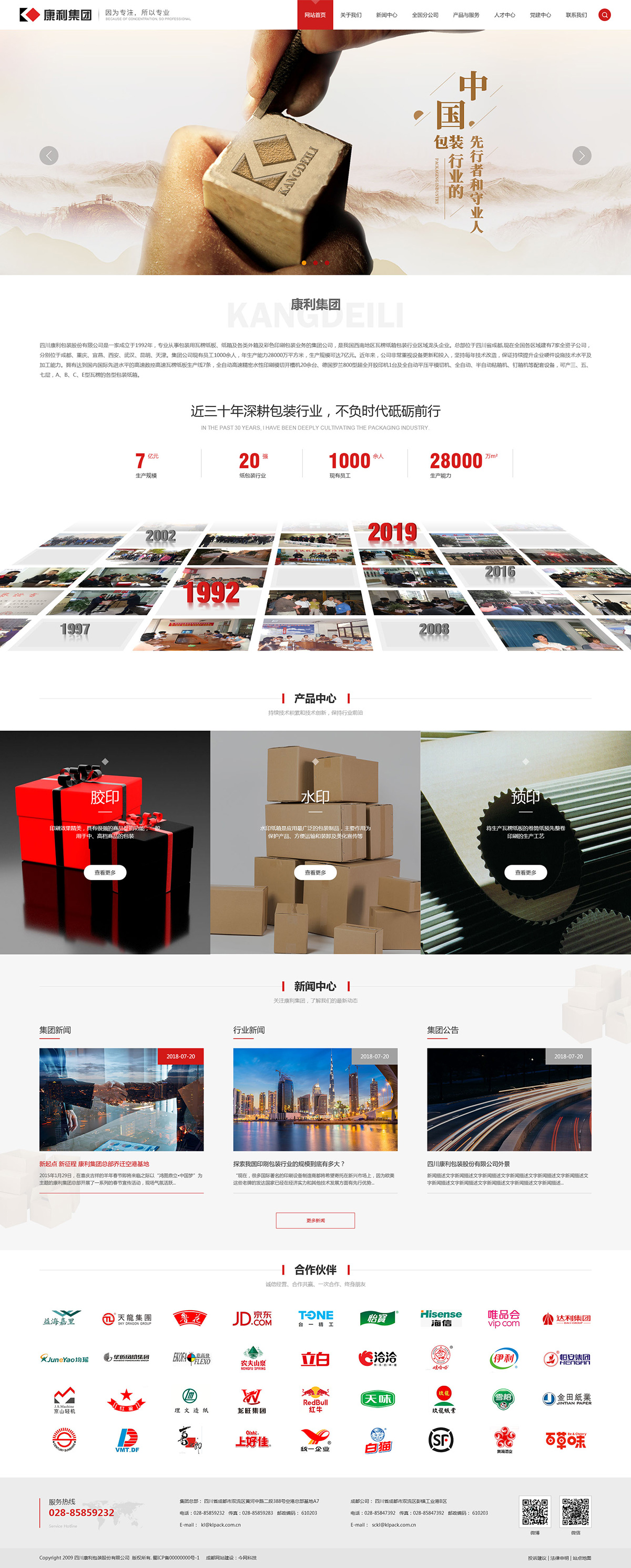 康利集團(四川康利包裝股份有限公司)始創(chuàng)于1992年,專業(yè)從事包裝用瓦楞紙板、紙箱及各類外箱及彩色印刷包裝業(yè)務,是中國西南地區(qū)瓦楞紙箱包裝行業(yè)區(qū)域龍頭企業(yè)。總部位于四川省成都,現在全國各區(qū)域建有7家全資子公司,分別位于成都、重慶、宜昌、西安、武漢、昆明、天津。集團公司現有員工1000余人,年生產能力28000萬平方米,生產規(guī)模可達10億元。