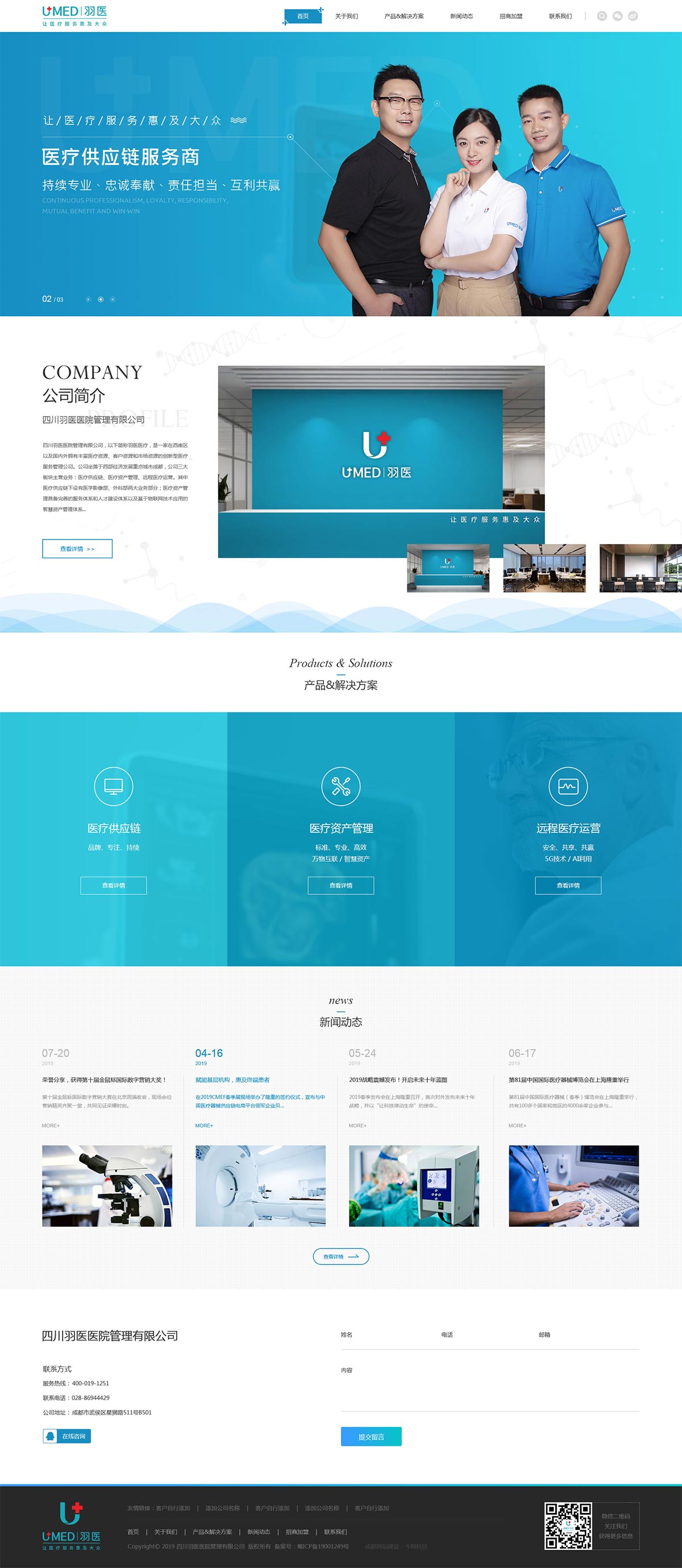 四川羽醫醫療管理有限公司,以下簡稱羽醫醫療,是一家在西南區及國內外擁有豐富醫療資源、客戶資源和市場資源的創新型醫療服務管理公司。羽醫醫療坐落于西部經濟發展重點城市成都,建立三大板塊主營業務:醫療供應鏈、醫療資產管理、遠程醫療運營。其中醫療供應鏈主要開展醫學影像、外科兩大業務方向;醫療資產管理具備完善的服務體系和專業人才體系以及基于物聯網技術應用的智慧資產管理體系;遠程醫療運營具備完全自主知識產權的遠程會診平臺、醫生集團及運營管理能力,同時借助最新5G技術和AI的應用,讓醫療服務更簡單。通過公司全體員工的共同努力,羽醫醫療逐漸成為集醫療供應鏈、醫療資產管理、遠程醫療運營、自主軟硬件開發為一體的集團化運營服務機構。