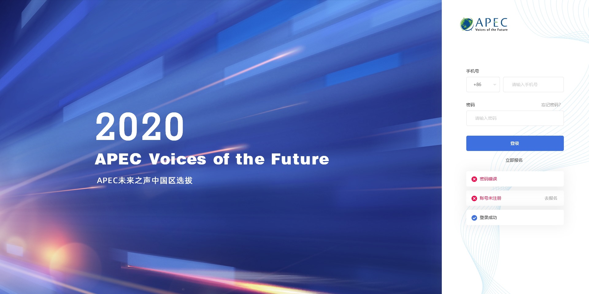 APEC未來之聲旨在從21個APEC經濟體中培養、選拔最優秀的青年代表,為他們提供前往馬來西亞與亞太地區政商界領袖共同出席2020年APEC會議周和APEC未來之聲國際青年營的機會,在APEC的國際頂尖平臺發出中國青年聲音、展現中國青年風采。APEC未來之聲向每一位志存高遠、勇于挑戰,熱愛祖國、心懷全球的未來領袖敞開大門,為他們提供廣闊舞臺和無限可能。