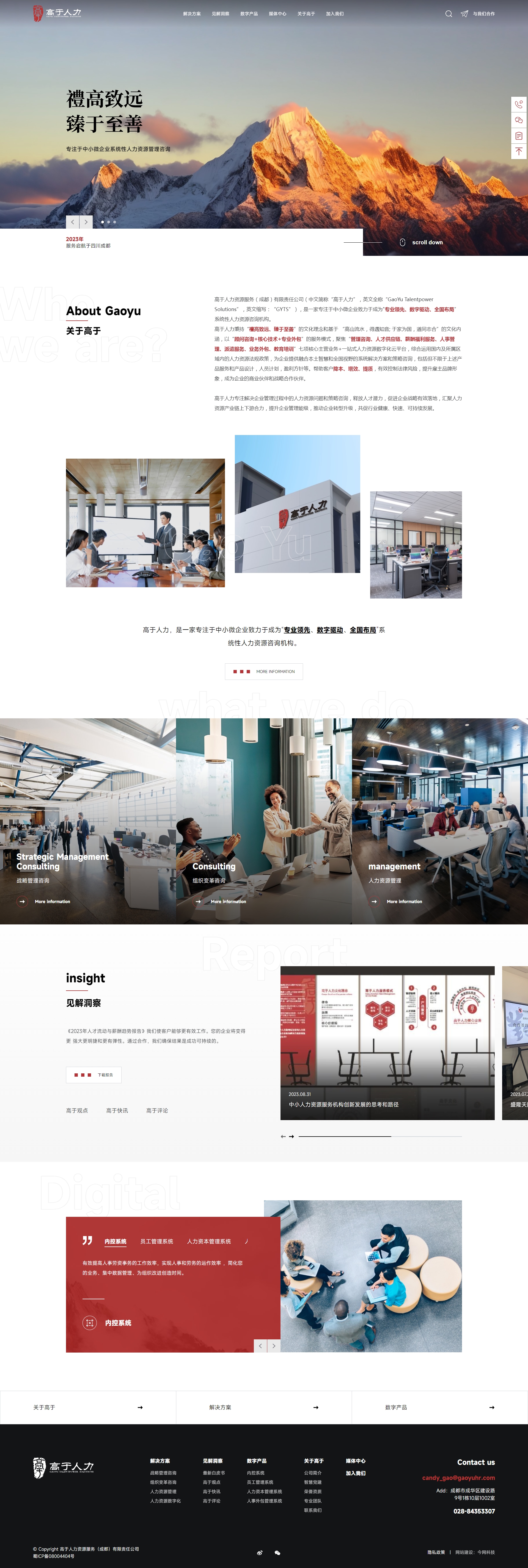 高于人力官方網站主頁主色調的設計理念為“數字未來”,頁面多處加入“光束流動”效果,以凸顯高于人力的專業屬性咨詢特色和發展成全國咨詢企業行穩致遠的步伐。