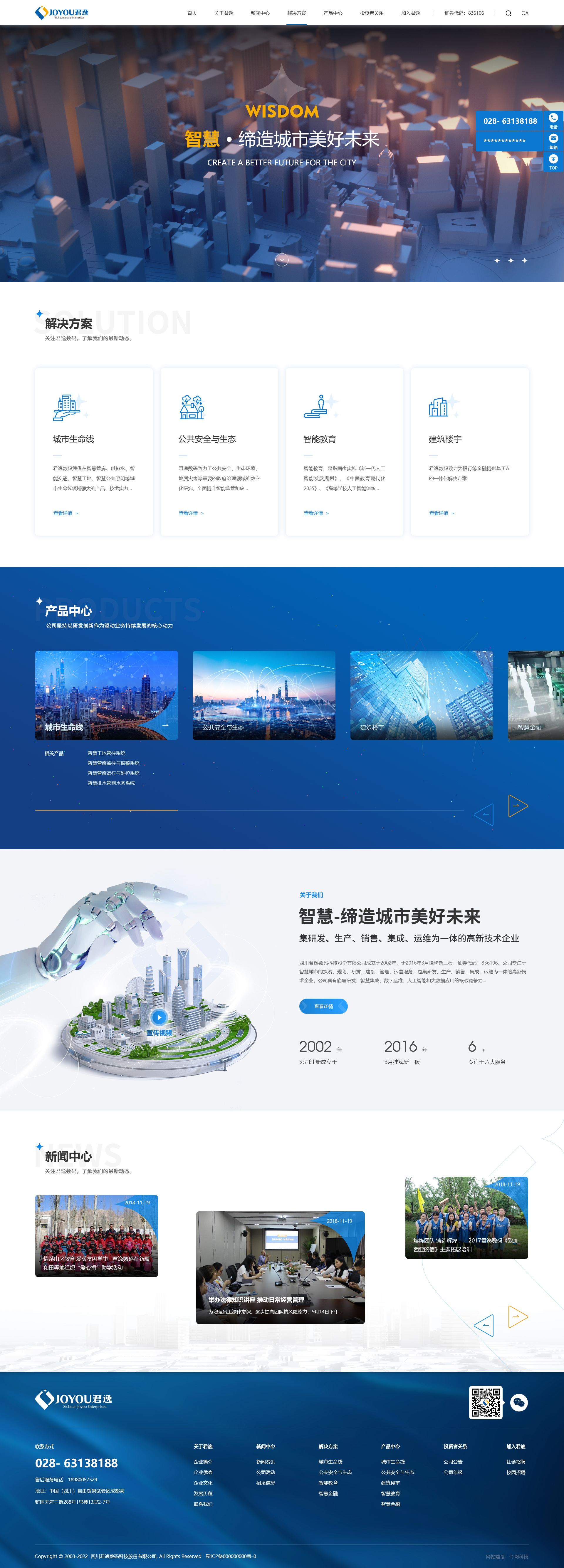 四川君逸數碼科技股份有限公司成立于2002年,于2023年7月深交所創業板上市,股票簡稱:君逸數碼,股票代碼:301172。公司專注于智慧城市的投資、規劃、研發、建設、管理、運營服務,是集研發、生產、銷售、集成、運維為一體的高新技術企業。