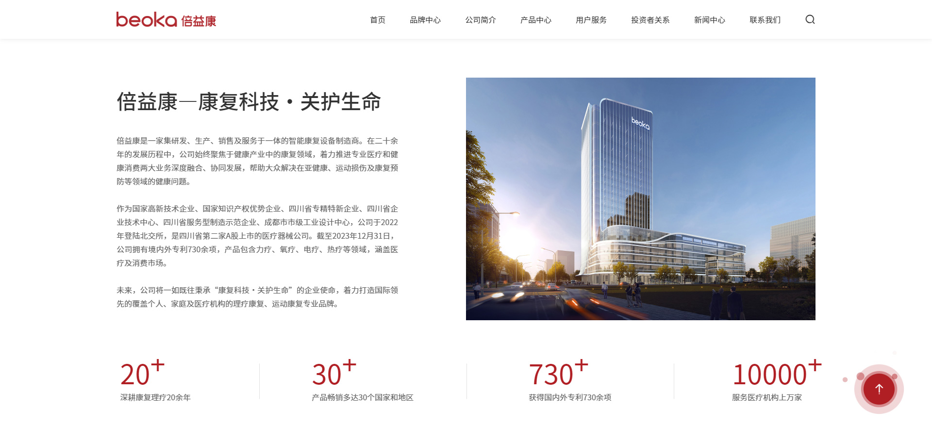 倍益康是一家集研發、生產、銷售及服務于一體的智能康復設備制造商。在二十余年的發展歷程中,公司始終聚焦于健康產業中的康復領域,著力推進專業醫療和健康消費兩大業務深度融合、協同發展,幫助大眾解決在亞健康、運動損傷及康復預防等領域的健康問題。